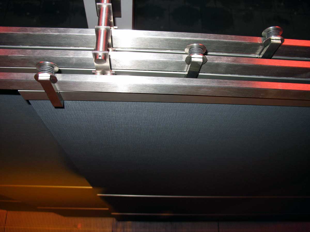 Sichtschutz auf einer 3 Lauf Edelstahl-Schiene montiert wurde.